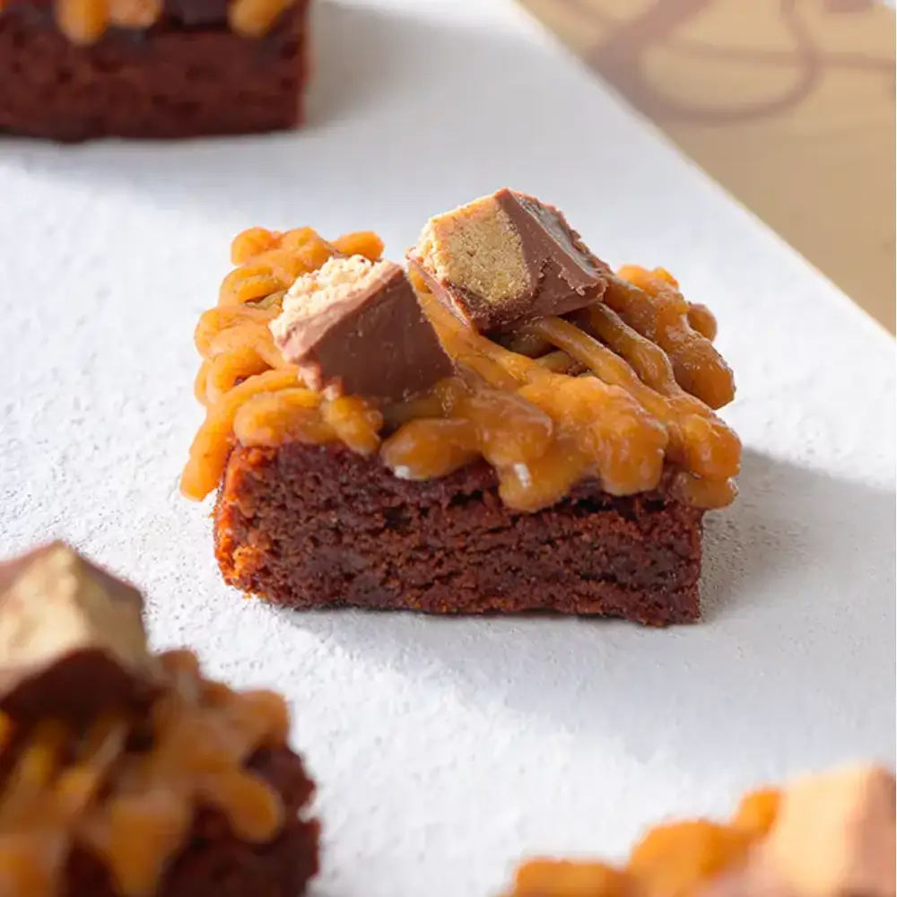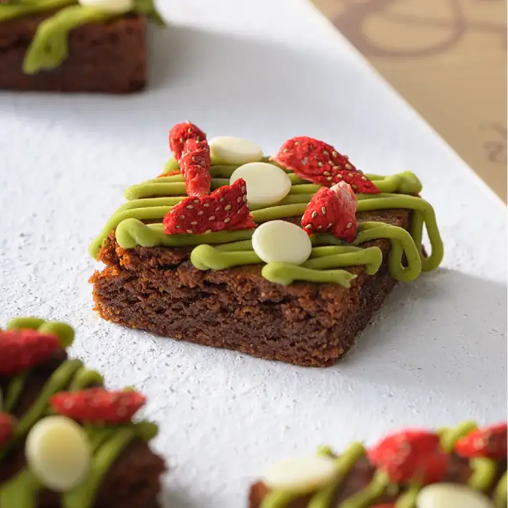 16 assorted chocolate brownies with 4 different toppings, Oreo, peanut butter, lotus and matcha strawberry.